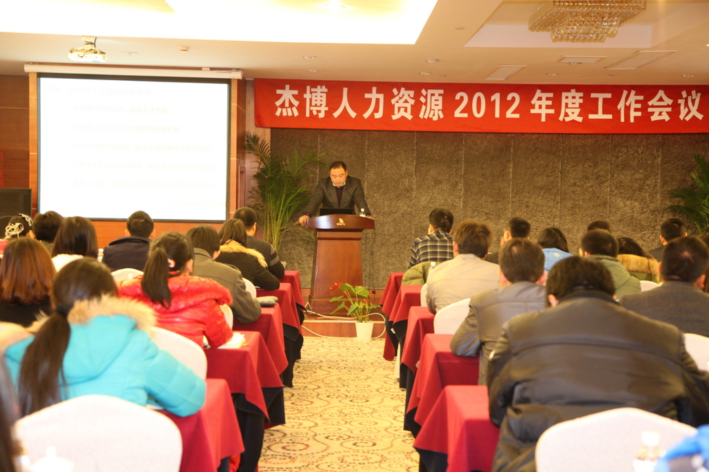下午,全體員工趕赴北侖春曉苑大酒店參加公司年度會議,會議由運營中心總監(jiān)牛金朋主持,總經(jīng)理應(yīng)海峰做年度工作報告,隨后,各分公司總經(jīng)理及總部各部門主管做工作匯報,會議最后,特別表彰了年度優(yōu)秀員工,感謝大家一年以來兢兢業(yè)業(yè)的付出,希望全體杰博人攜起手來,共創(chuàng)輝煌!