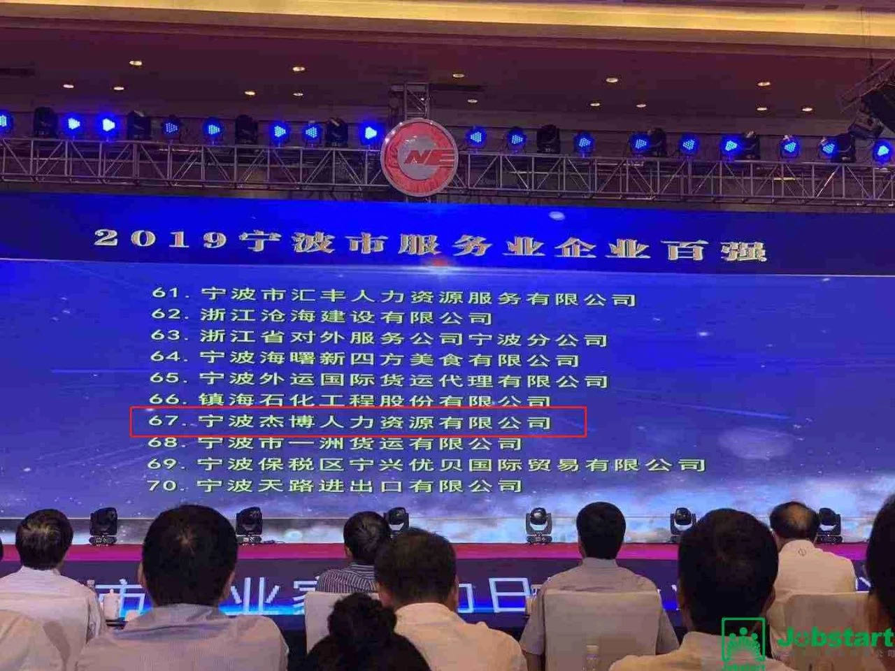 公司業(yè)務(wù)團(tuán)隊(duì)合伙人陳國才代表我司出席了頒獎(jiǎng)典禮。在本次頒獎(jiǎng)典禮中,寧波杰博人力資源有限公司喜獲“2019寧波市服務(wù)業(yè)百強(qiáng)企業(yè)”第67位!