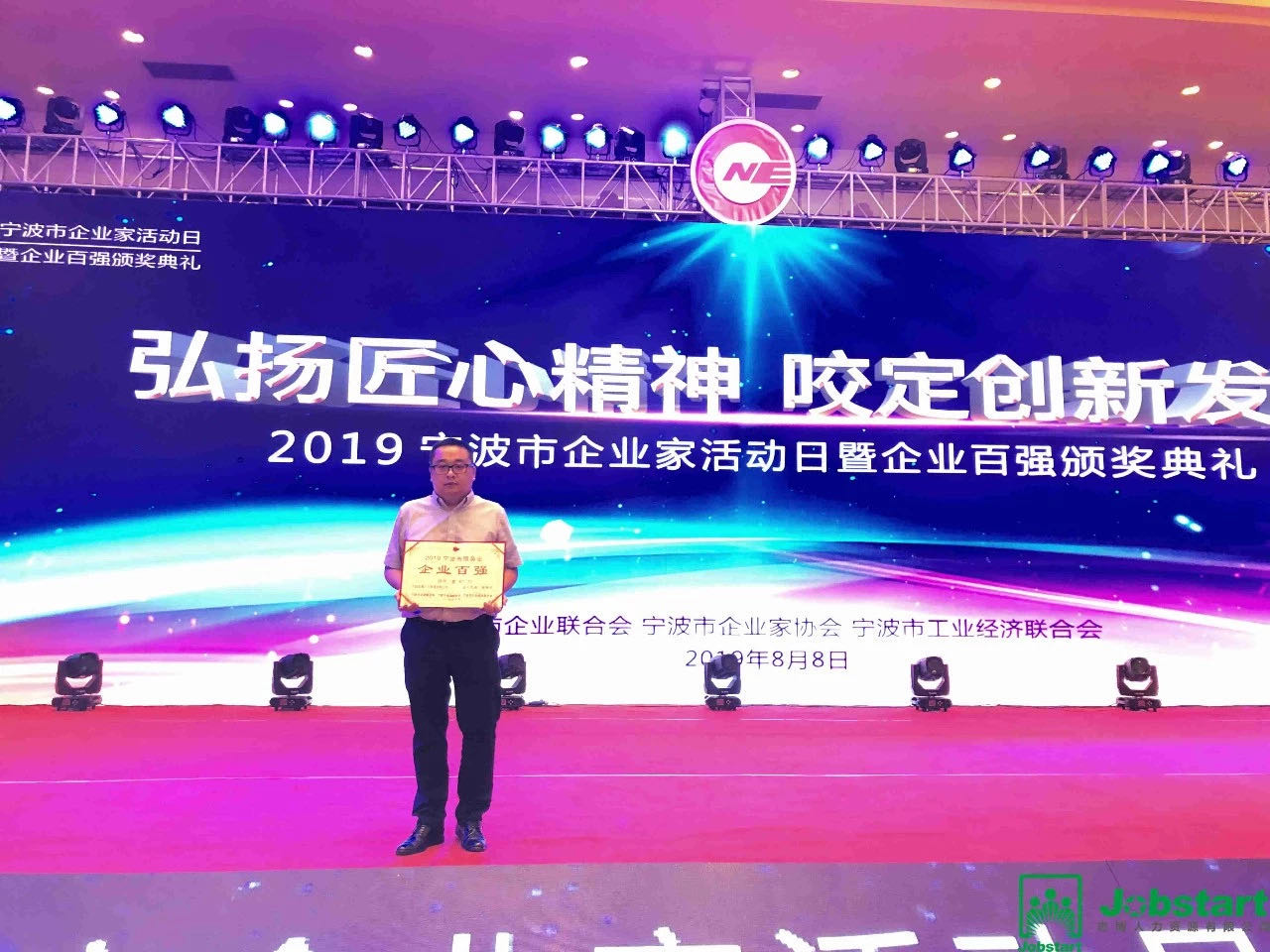 2019年8月8日,由寧波市企業(yè)聯(lián)合會(huì)、寧波市企業(yè)家協(xié)會(huì)、寧波市工業(yè)經(jīng)濟(jì)聯(lián)合會(huì)舉辦的以“弘揚(yáng)匠心精神,咬定創(chuàng)新發(fā)展”為主題的“2019寧波市企業(yè)家活動(dòng)日暨百強(qiáng)企業(yè)頒獎(jiǎng)典禮”在寧波南苑飯店隆重舉行。